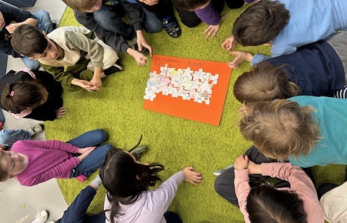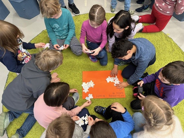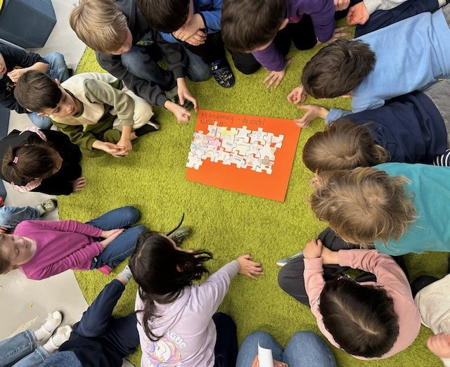 Jedes Kind ist einmalig – mit eigenen Stärken, Interessen und Vorlieben. Doch gemeinsam bilden sie eine starke Klassengemeinschaft. Um das sichtbar zu machen, gestalteten die Schülerinnen und Schüler jeweils ein eigenes Puzzleteil, das ihre Individualität widerspiegelt. Anschließend wurden alle Teile zu einem großen Klassenpuzzle zusammengesetzt. So wurde deutlich: Jeder Einzelne ist wichtig und zusammen bilden wir eine bunte und wertvolle Gemeinschaft.