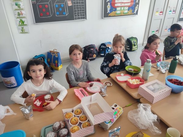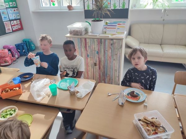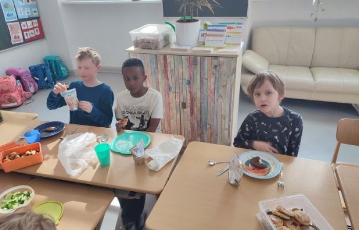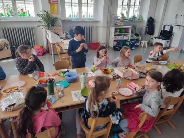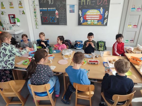 Am letzten Schultag vor den Osterferien brachten die Kinder der Klasse 1b zahlreiche Leckereien für unser gemeinsames Osterfrühstück mit.