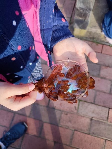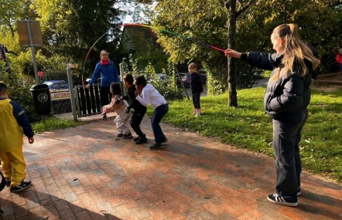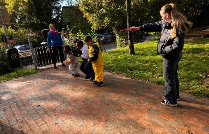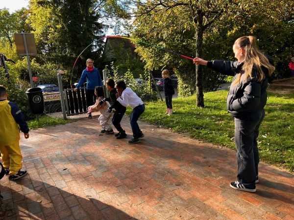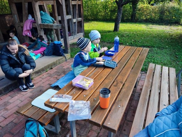 Bei strahlendem Sonnschein genossen wir auf dem Spielplatz unsere mitgebrachte Brotzeit, nutzten noch einmal die Wasser-Matsch-Anlage richtig aus und spielten gemeinsam Fangen, Verstecken und Seifenblasenhaschen.