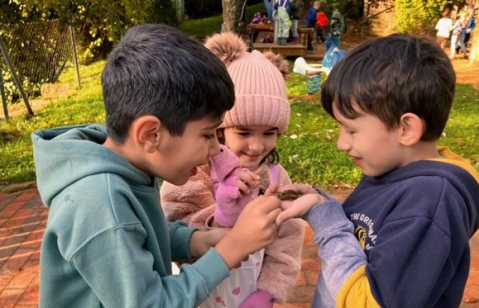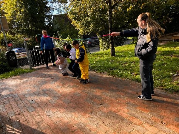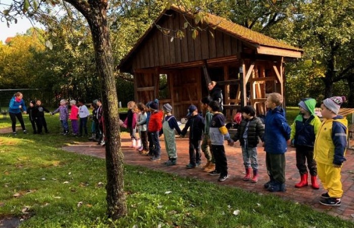 Am letzten Mittwoch wanderten wir, die Klasse 1b, zum Spielplatz An den Herrengärten.