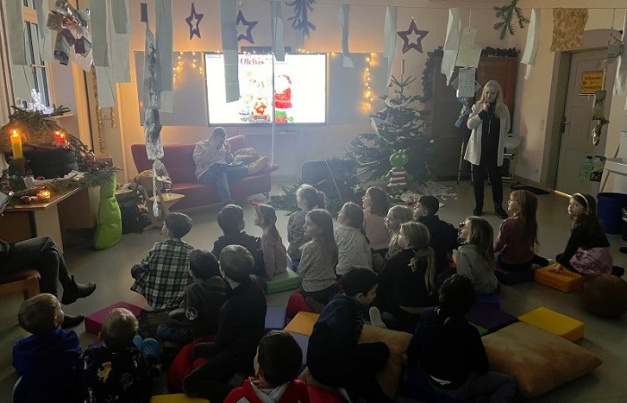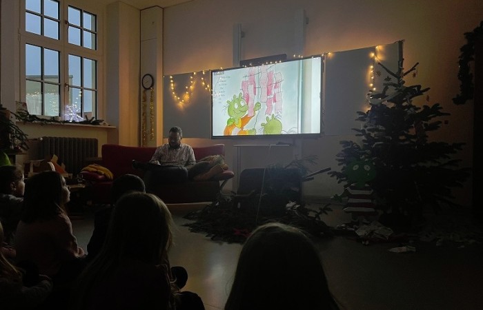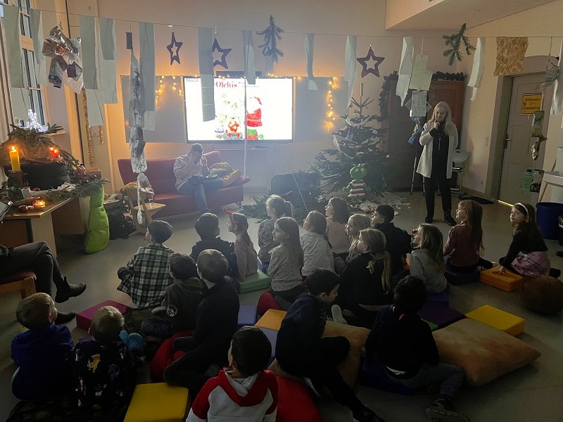 In einem gemütlichen „Adventslesestübchen“ versammelte sich die Klasse 1c, um die festliche Zeit mit einer besonderen Lektüre zu zelebrieren – dem Buch „Olchis feiern Weihnachten“.