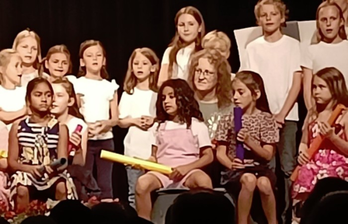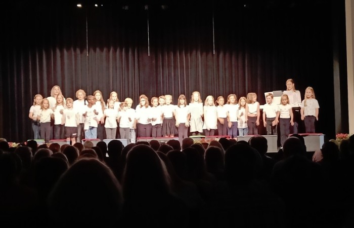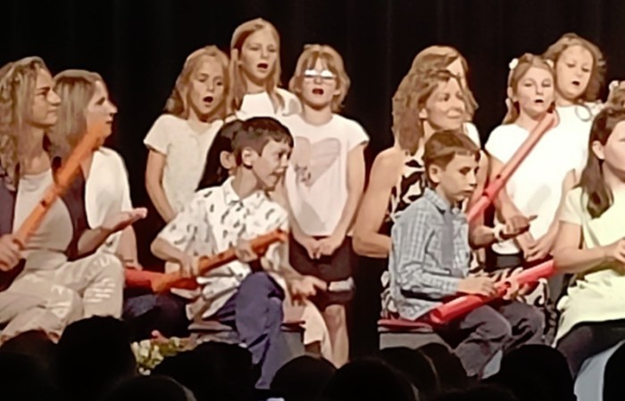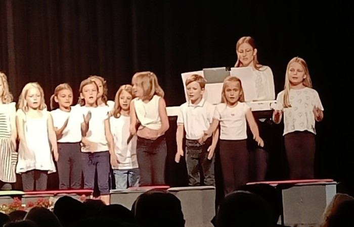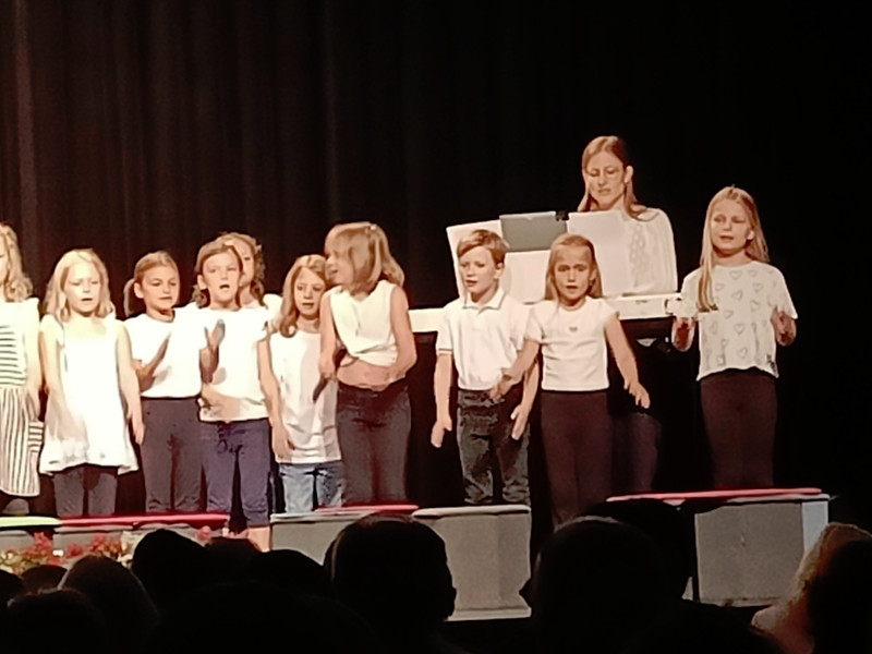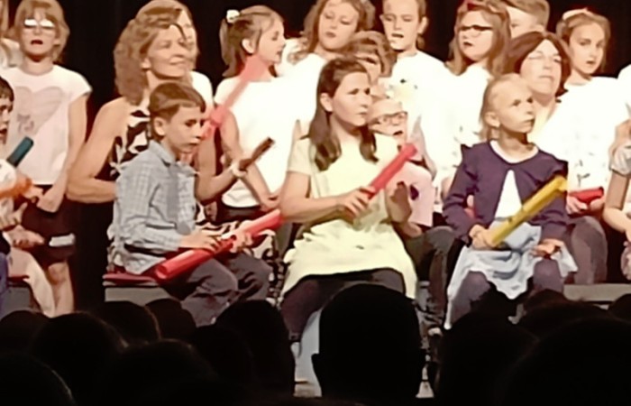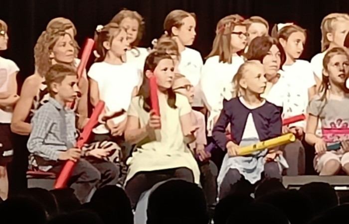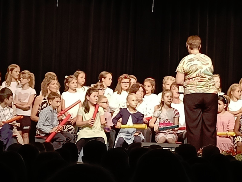 Die Chor-AG unserer Schule, unter der Leitung von Frau Kreß, begann sehr ausdrucksstark mit dem Lied "Miteinander". Unsere Orff-AG, unter der Leitung von Frau Berg, kam mit den Boomwhackers dazu und gemeinsam wurde das Lied "We Are the World" äußerst gefühlvoll gesungen und begleitet. Besonders hervorzuheben ist, dass sich auch Eltern in die Orff-AG einbrachten und Schüler, Eltern und Lehrer gemeinsam musizierten. So wurde das Konzert von unseren AGs sehr stimmungsvoll und professionell eröffnet.