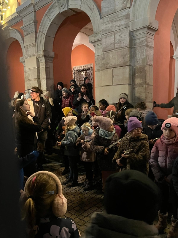 Der Chor und die Ukulelen-AG unserer Schule, unter der Leitung von Frau Leisner und Frau Böhm, sangen und spielten bei der Eröffnung des diesjährigen Weihnachtsmarktes in Neustadt.