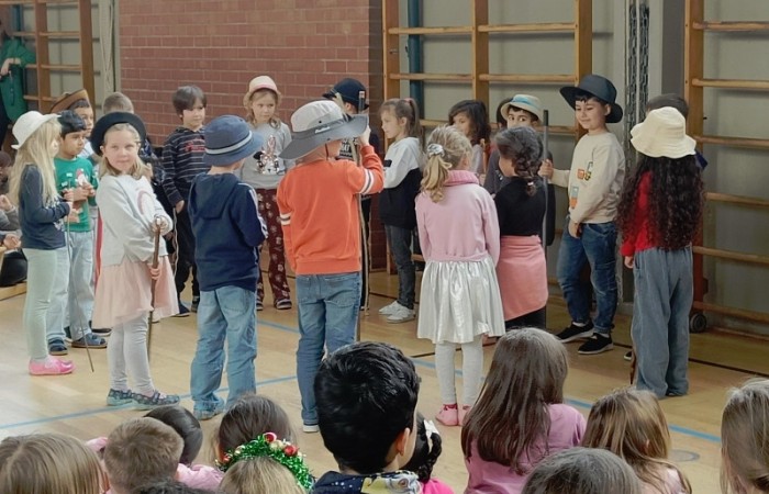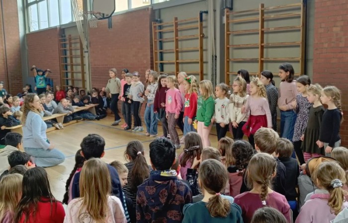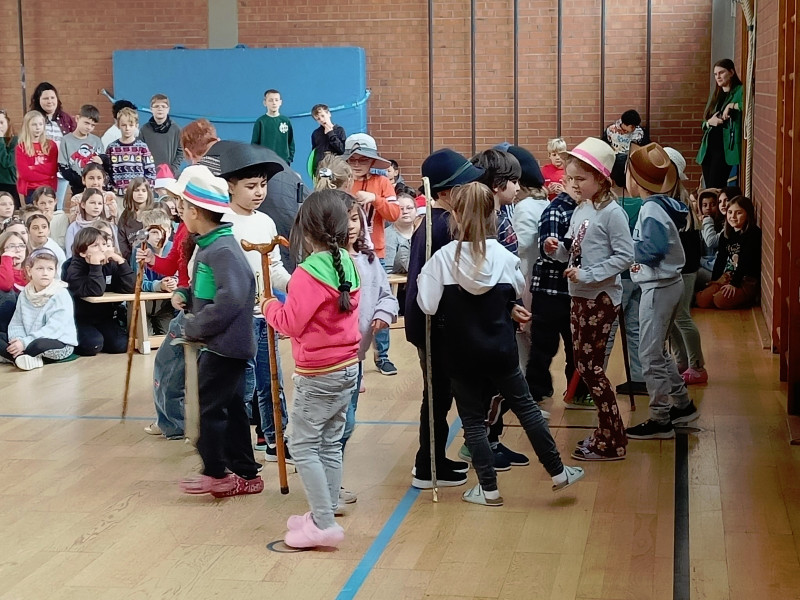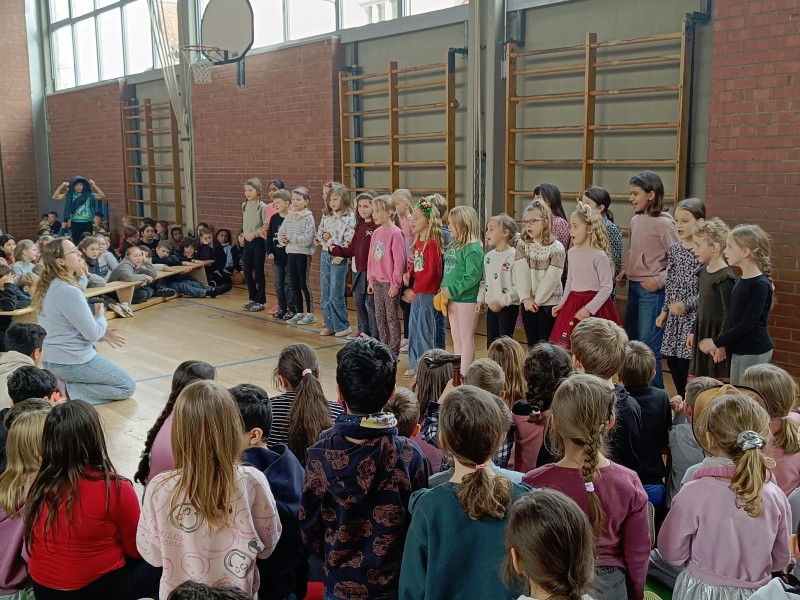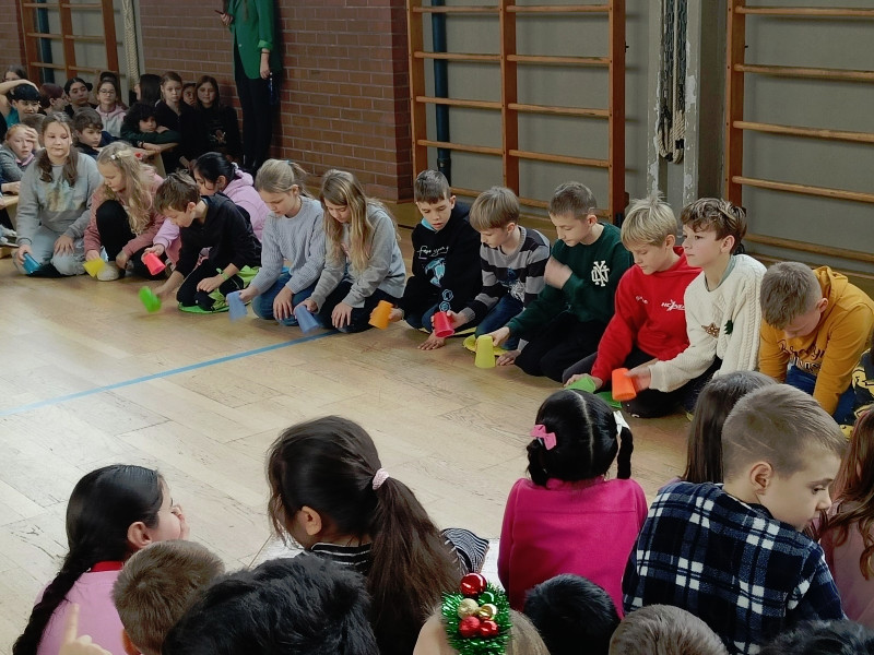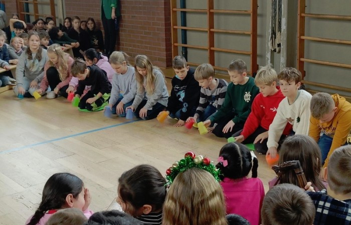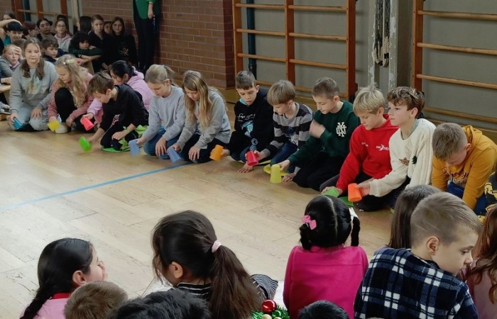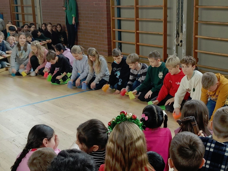 Am letzten Schultag vor den Weihnachtsferien fand in der Turnhalle die gemeinsame Weihnachtsfeier der ganzen Schule statt.