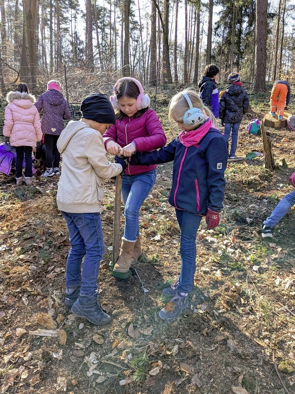 Endlich durften wir wieder in den Wald und dem Förster beim Bäumepflanzen helfen.