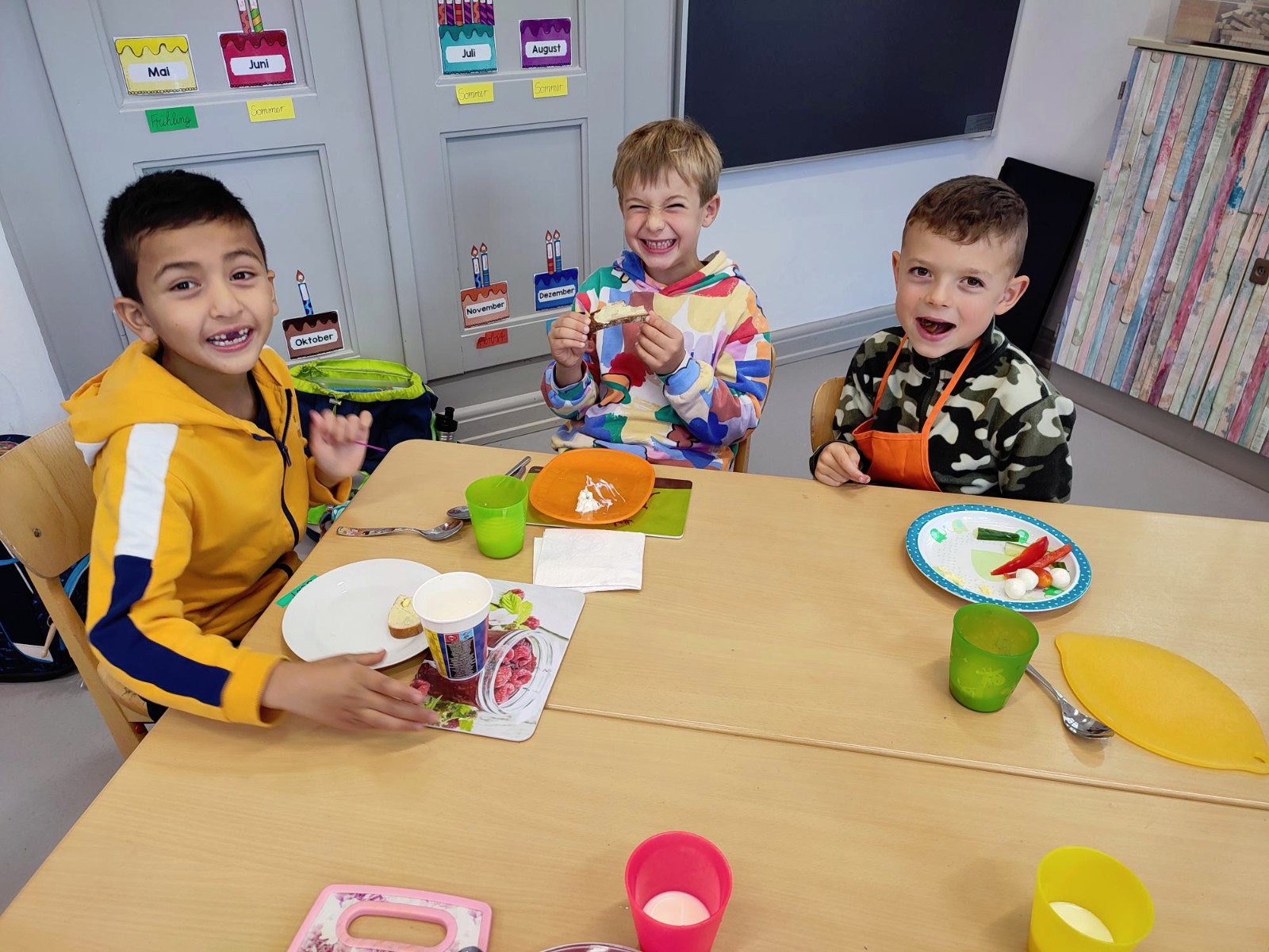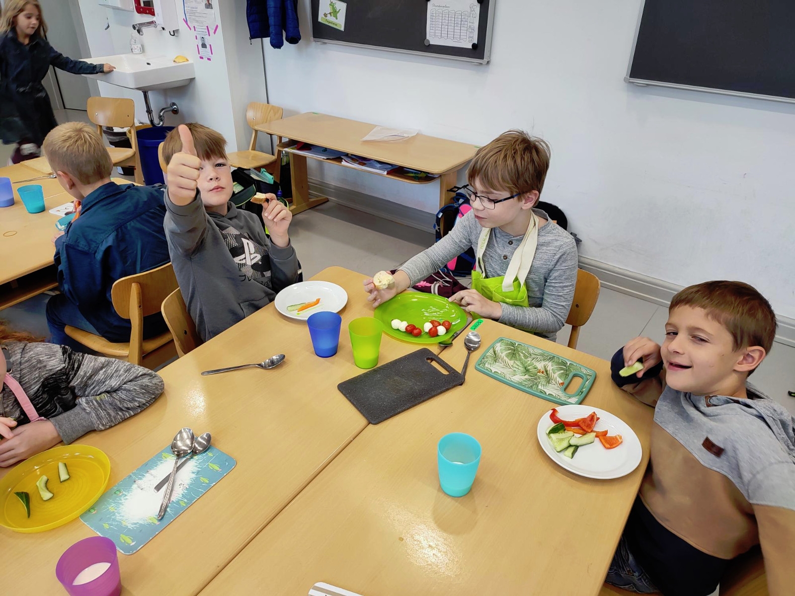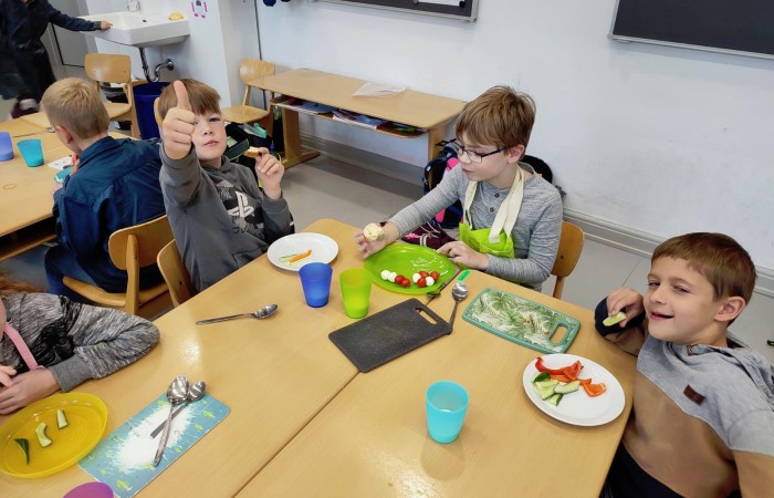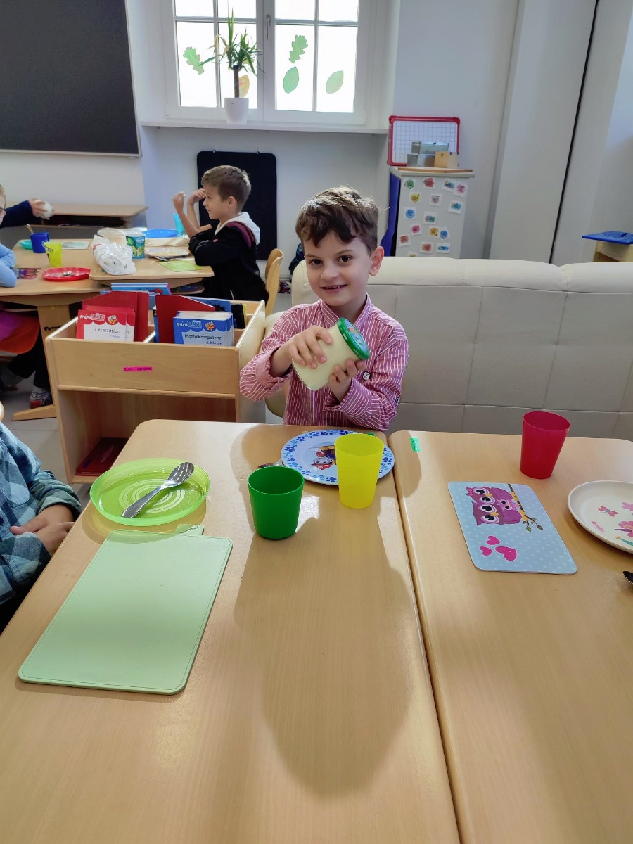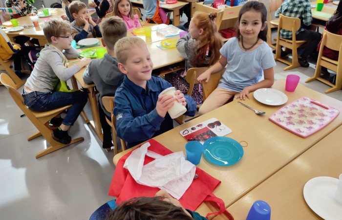 Natürlich wurden die zubereiteten Sachen danach gemeinsam und in gemütlicher Runde bei einem Glas Kuhmilch verspeist.