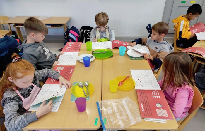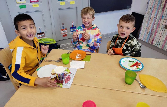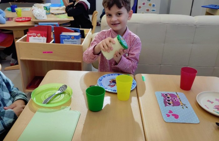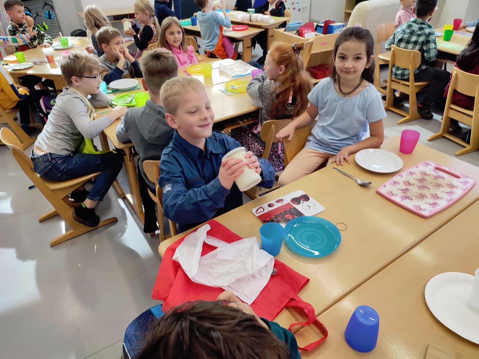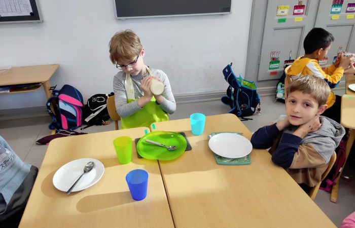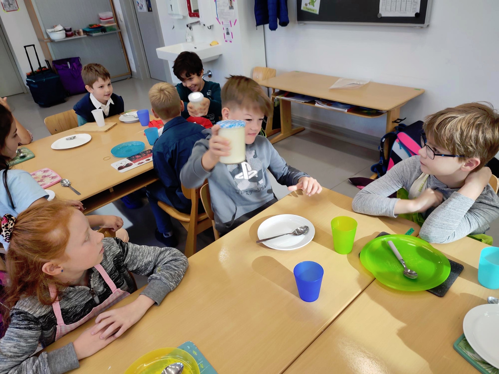 Natürlich wurden die zubereiteten Sachen danach gemeinsam und in gemütlicher Runde bei einem Glas Kuhmilch verspeist.