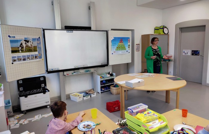 In der Klasse 2b war Frau Stadelmann von den Landfrauen als Botschafterin für unsere gesunde Milch unterwegs.