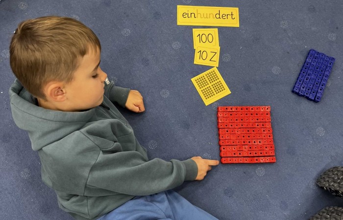 Da es in unserer Klasse auch Kinder gibt, die sich bereits sicher im Zahlenraum bis 100 bewegen, dürfen diese Kinder auch schon in größeren Zahlenräumen üben oder mit den großen Zahlen rechnen.