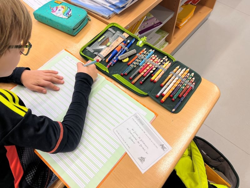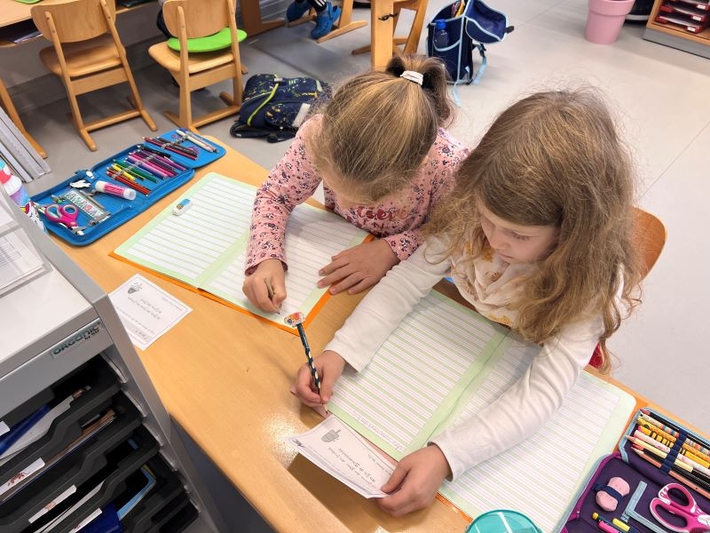 Nach den Ferien gehen wir einen Schritt weiter. Dann wird die Klasse 2c das Gelernte anwenden, indem sie mit einer Wörterliste und dem Wörterbuch arbeiten. Diese Übungen bereiten die Kinder optimal auf den späteren Schulalltag vor, da sie lernen, eigenständig Wörter zu suchen. So entwickeln sie nicht nur ein besseres Verständnis für die Struktur der Sprache, sondern auch Fähigkeiten im Bereich de Recherche und des selbstständigen Lernens.