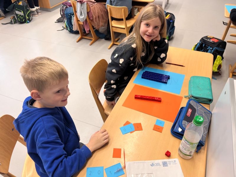 Die Klasse 2c ist mit Freude und Engagement dabei und zeigt bereits große Fortschritte. Dieser anschauliche Zugang legt nicht nur die Basis für die kommenden mathematischen Herausforderungen, sondern weckt auch die Neugier und Freude am Lernen – und das ist das Wichtigste!