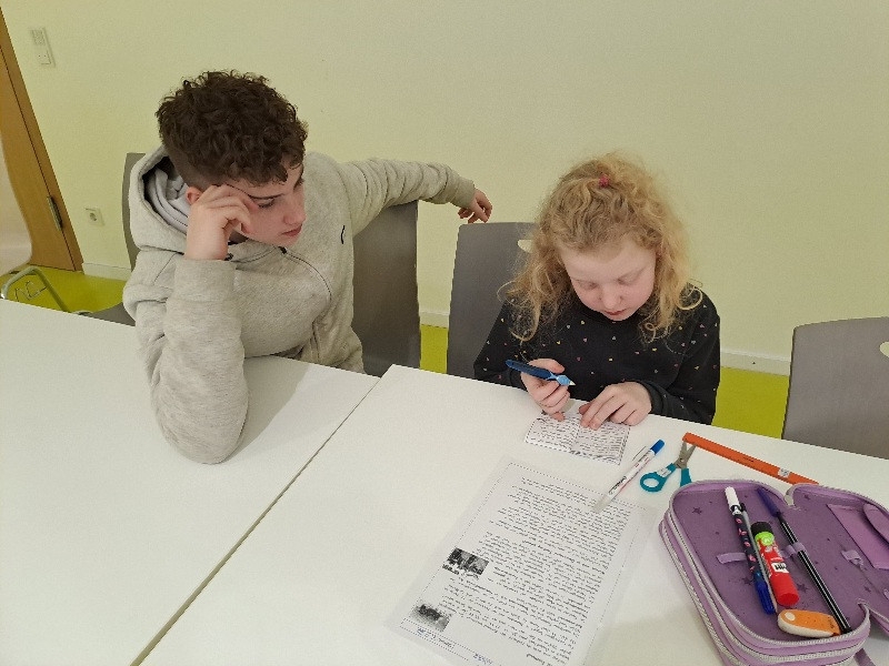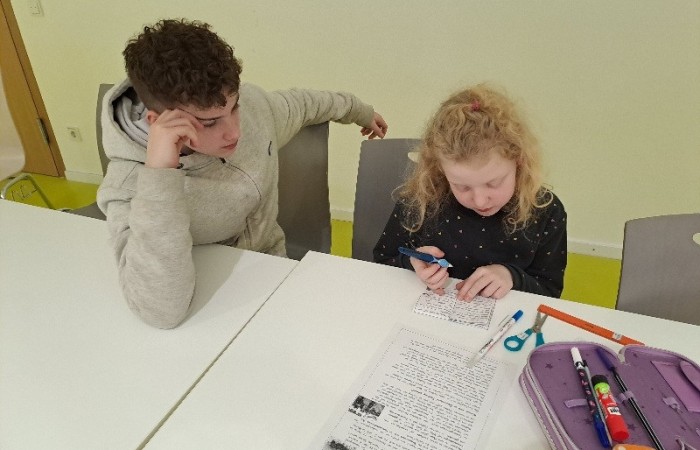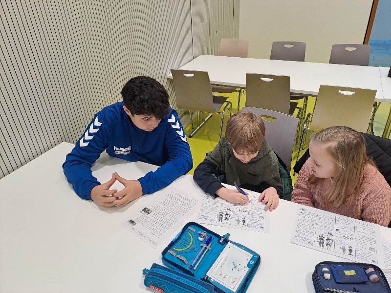 Die Schülerinnen und Schüler der 8aG unterstützt uns seit Schuljahresbeginn wöchentlich in unserem Lernen. Dazu besuchen uns immer 4- 5 Mittelschüler/innen für eine Schulstunde.