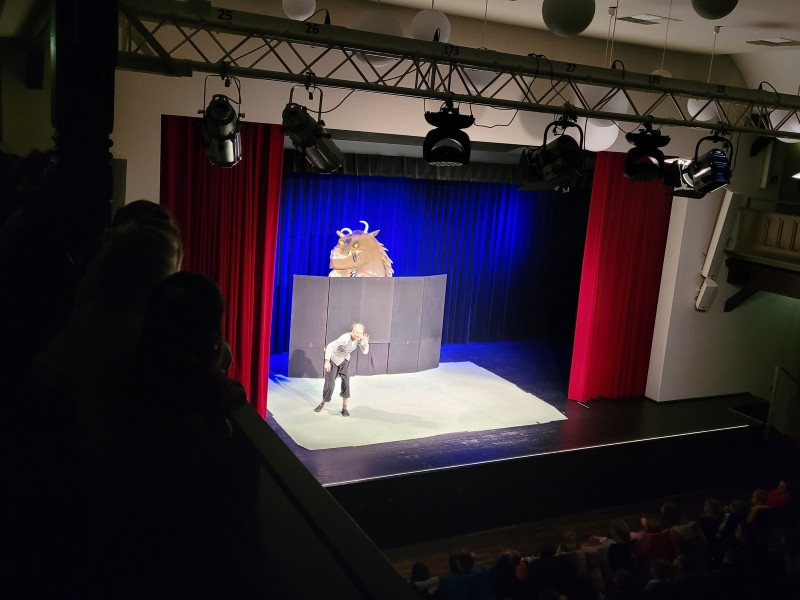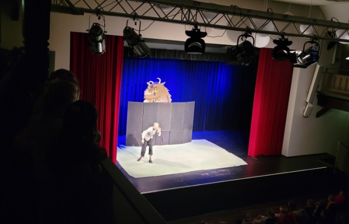 Falls die Klasse 3a das Bilderbuch ,,Der Grüffelo” noch nicht kannte, so konnte sie den furchterregenden Grüffelo und die tapfere Maus in dem Theaterstück ,,Der Grüffelo” kennenlernen. Bekanntschaft mit dem Grüffelo schloss die Klasse 3a am 12.3.24 in der Neustadthalle.