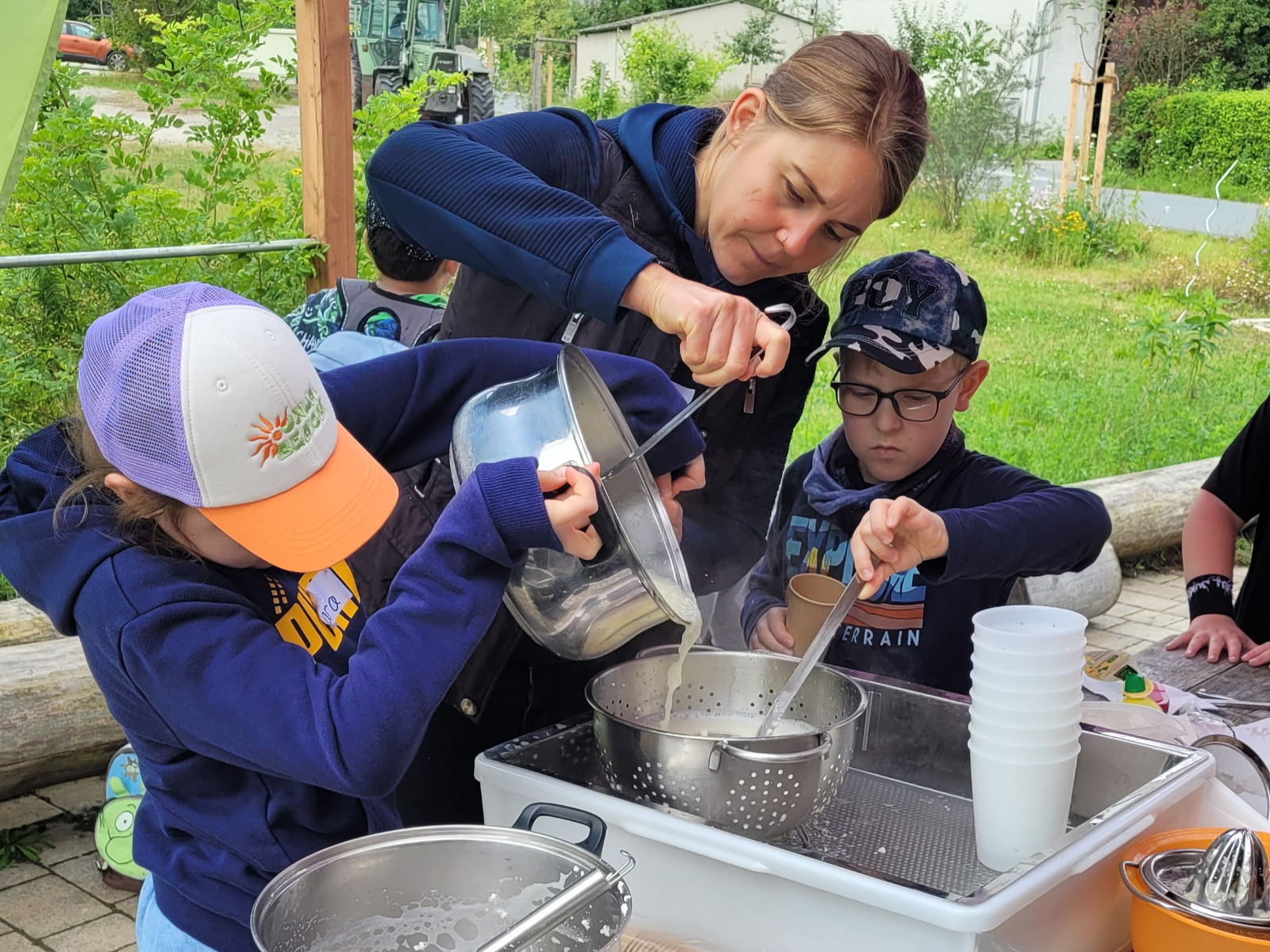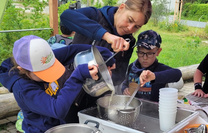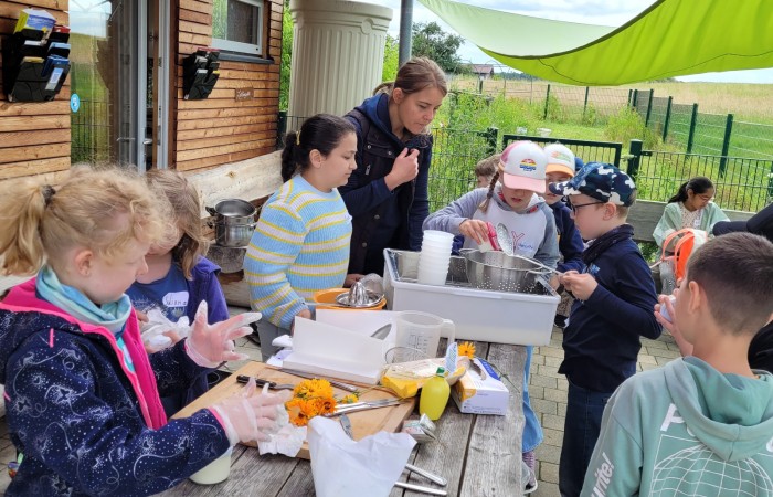 Dabei haben wir zuerst den Kuhstall, den Melkstand und die süßen Kälbchen inspiziert und viele interessante Informationen über den Biobauernhof und seine Bewohner erhalten. Als Abschluss durften wir unseren eigenen Frischkäse und unsere eigene Butter herstellen und diese anschließend ausgiebig kosten. Herzlichen Dank an Familie Prechtel für die tollen Einblicke in die Landwirtschaft und die tolle Bewirtung!