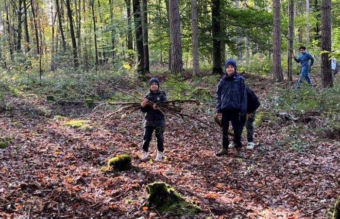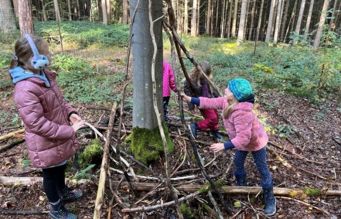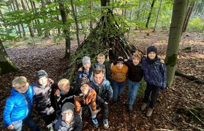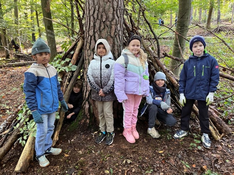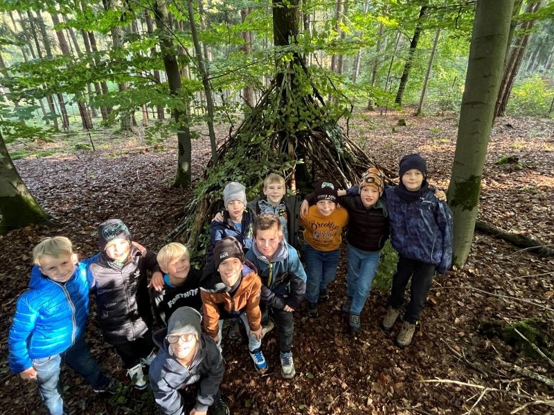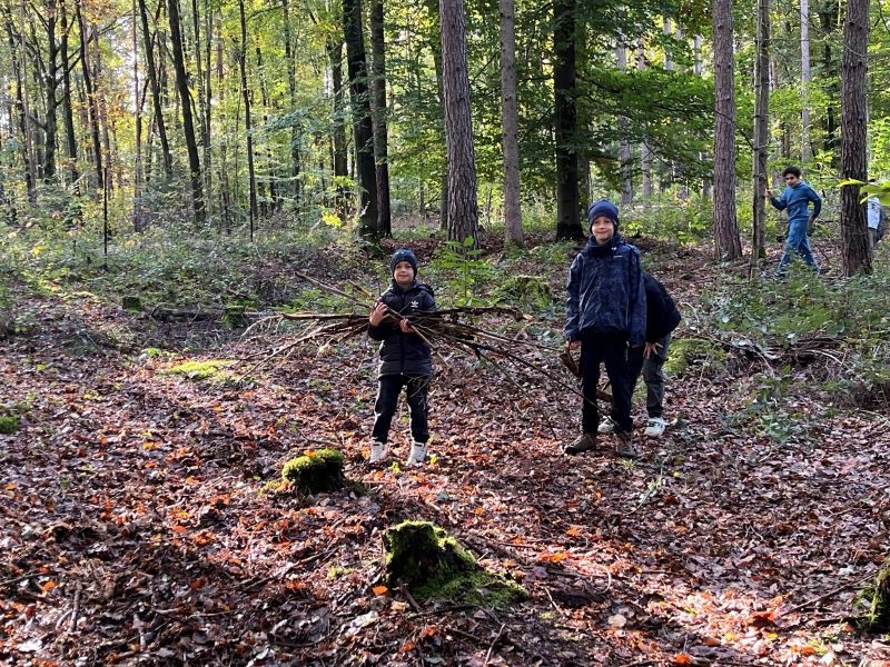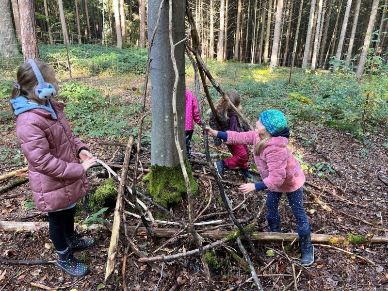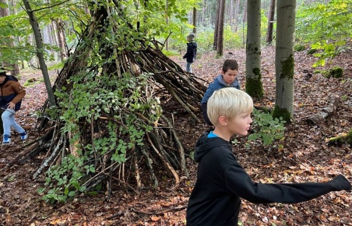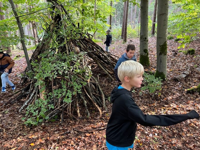 Ein Höhepunkt des Tages war das Bauen von Häuschen aus Ästen. Die Kinder waren kreativ und gestalteten ihre kleinen Bauwerke mit viel Fantasie. Es war beeindruckend zu sehen, wie sie zusammenarbeiteten und ihre Ideen umsetzten.