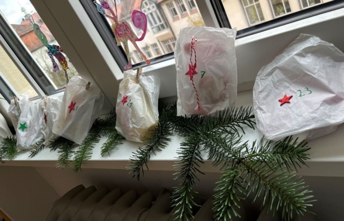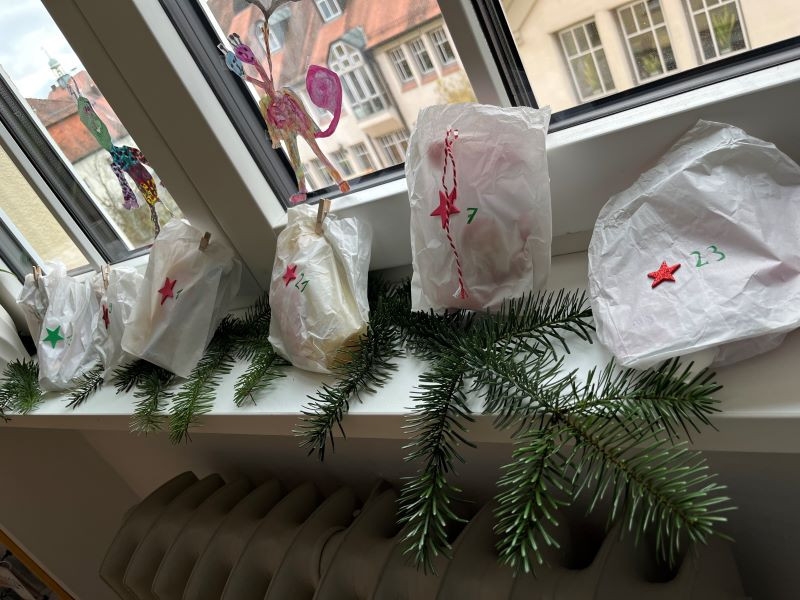 Neben der Weihnachtsfeier gab es in der Adventszeit noch weitere tolle Momente, die uns in festliche Stimmung versetzt haben. Darunter zählt beispielsweise das Adventslesestübchen (s. Artikel), die Adventsfeier mit der Klasse 3b (s. Artikel), das von uns besuchte Weihnachtskino, ein Adventskranz, an dem wir jede Woche eine neue Kerze anzünden konnten, Lichterketten im Klassenzimmer, das gemeinsame Lesen des Adventskalenderbuchs „Du spinnst wohl!“ und nicht zuletzt der wundervolle, selbstgestaltete Adventskalender von der Klasse für die Klasse! An dieser Stelle möchte ich sowohl den Elternsprecherinnen explizit als auch allen Eltern noch einmal ausdrücklich für die Mühen danken. Nicht nur den Kindern hat es täglich eine große Freude bereitet, auch ich konnte mich jeden Morgen über kleine Überraschungen freuen! Herzlichen Dank dafür!