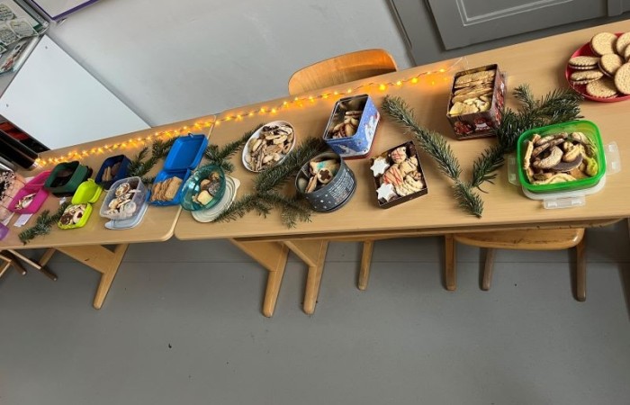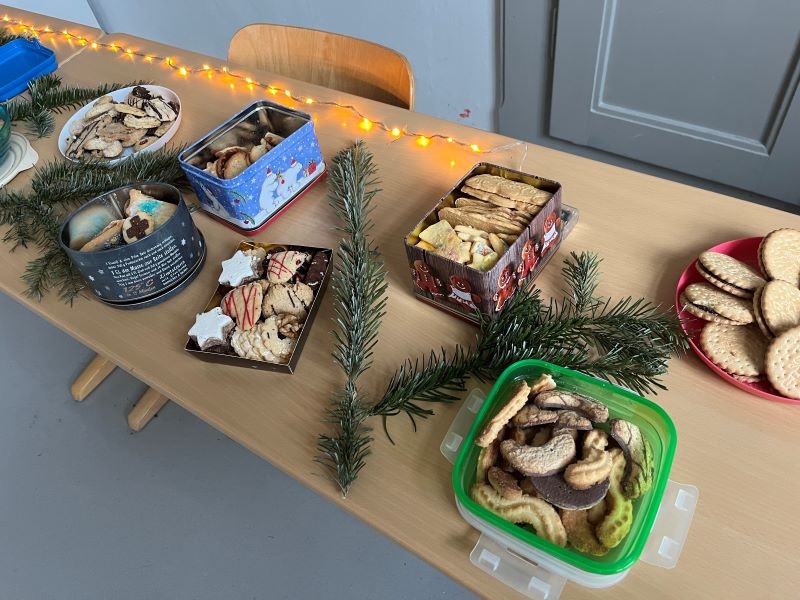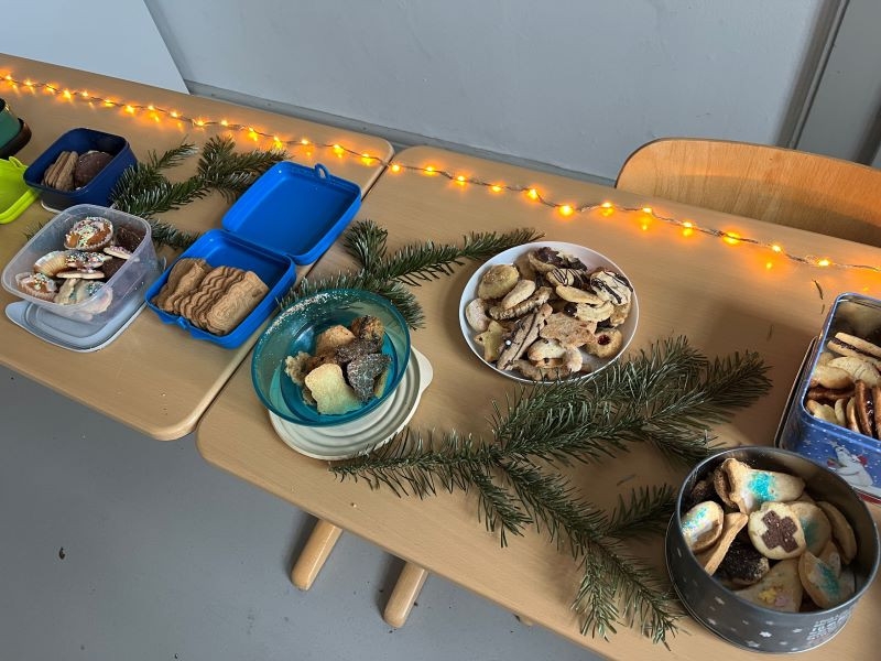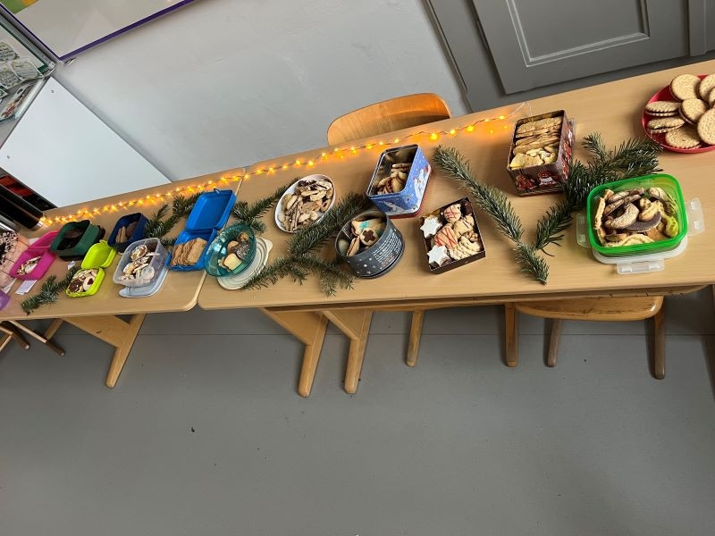 Gemeinsam eröffneten wir das Buffet mit dem Singen eines Weihnachtsliedes. Es gab viele selbstgebackene Plätzchen, Lebkuchen und andere kleine Leckereien. Die Kinder hatten große Freude daran, sich auszutauschen und alles zu probieren.