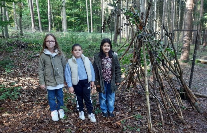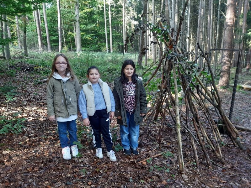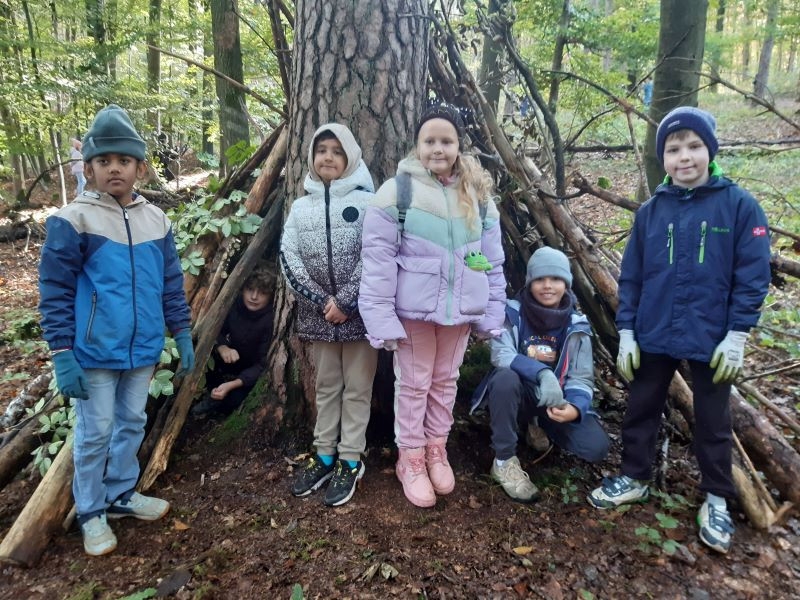 Ein Höhepunkt des Tages war das Bauen von Häuschen aus Ästen. Die Kinder waren kreativ und gestalteten ihre kleinen Bauwerke mit viel Fantasie. Es war beeindruckend zu sehen, wie sie zusammenarbeiteten und ihre Ideen umsetzten.