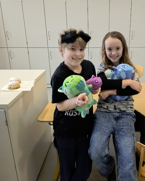 Prinzessinnen, Katzen, Sherrifs, Fledermaus und Co. aßen zusammen Krapfen und stimmten sich mit gemeinsamen und lustigen Spielen auf die Faschingszeit ein.