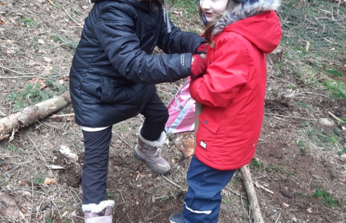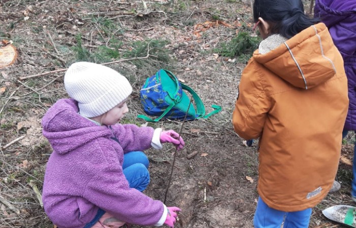 Diese Exkursion war nicht nur ein Beitrag zum Umweltschutz, sondern auch eine wertvolle Erfahrung für die Kinder. Sie erwarben Kenntnisse über die Bäume sowie über Teamwork und Verantwortung für unsere Umwelt. Voller Einsatz unterstützten sich die Partnerteams, immer bestehend aus einem Drittklässler und einem Erstklässler, gegenseitig beim Einpflanzen der Bäumchen.
