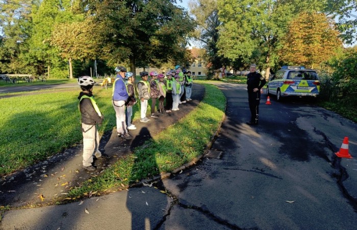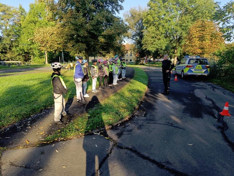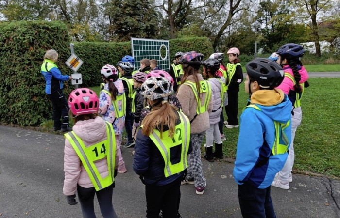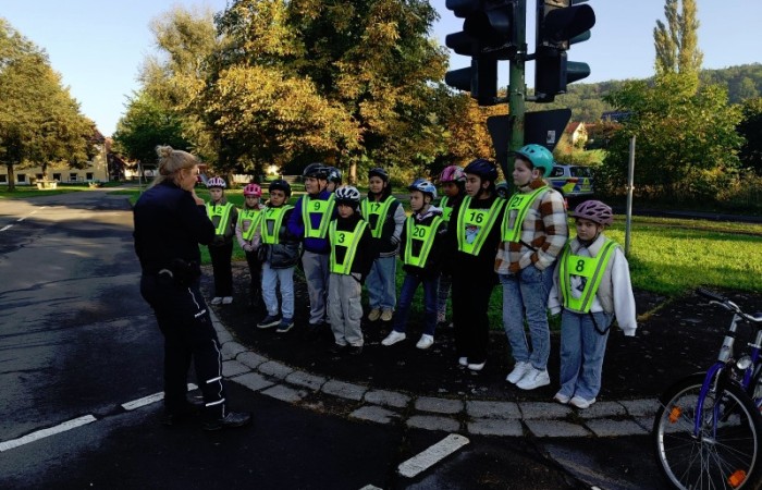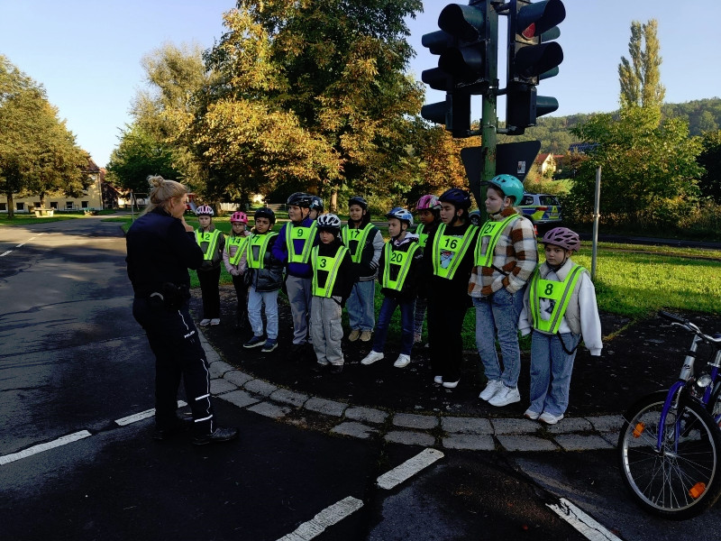 Auf dem Verkehrsübungsplatz in Diebach übten wir, bei meist gutem Wetter, konzentriert und fleißig mit den beiden Polizistinnen. Sie standen uns immer mit Rat und Tat zur Seite. Sich alles zu merken war gar nicht so einfach.