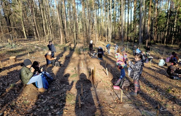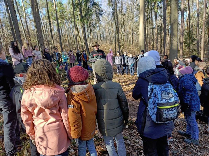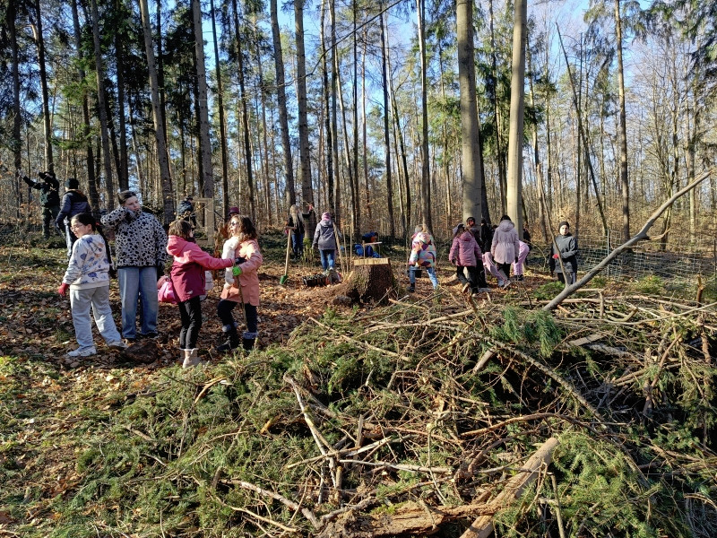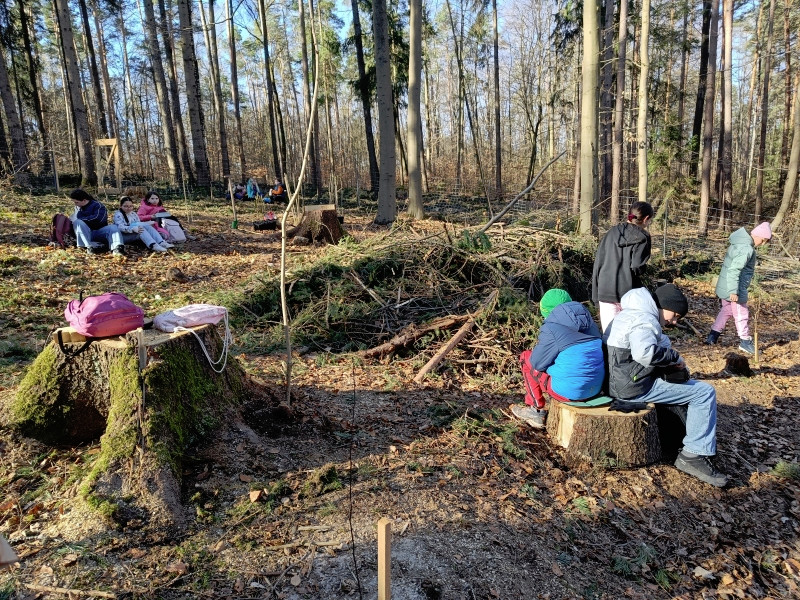 Am 7.4.25 machten wir uns bei strahlendem Sonnenschein, aber eiskalten Temperaturen auf in den Schulwald, um einen Beitrag zum Schutz und zur Erhaltung des Waldes zu leisten.