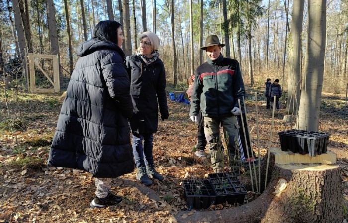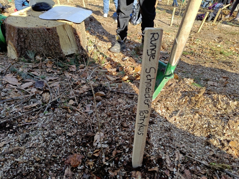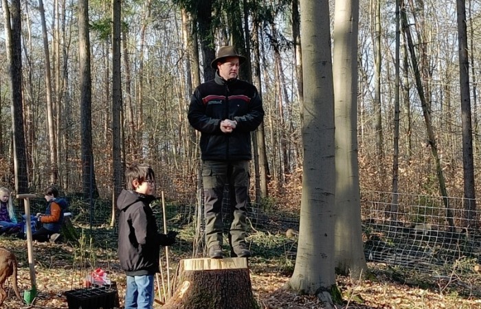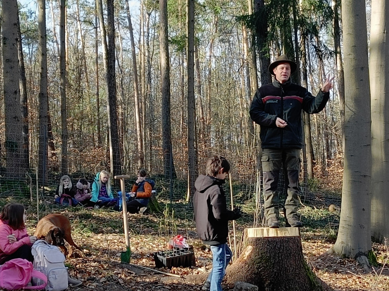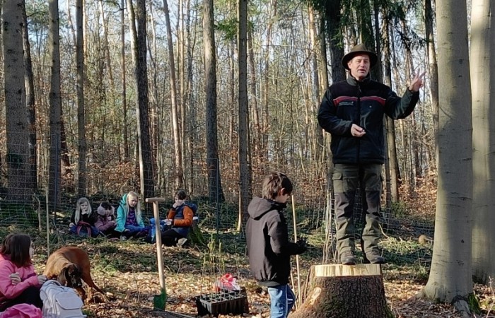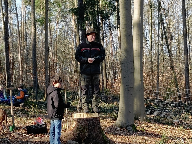 Wir pflanzten gemeinsam mit dem Förster Baumarten, die gut mit einem wärmeren und trockeneren Klima zurechtkommen.
