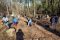 Dieses Jahr gruben wir Löcher für die Vogelkirsche, Elsbeere, Zerreiche, Sommerlinde und den Baumhasel. Wir suchten für sie luftige, sonnige Plätze, an die auch der Regen gut hinkommt.
