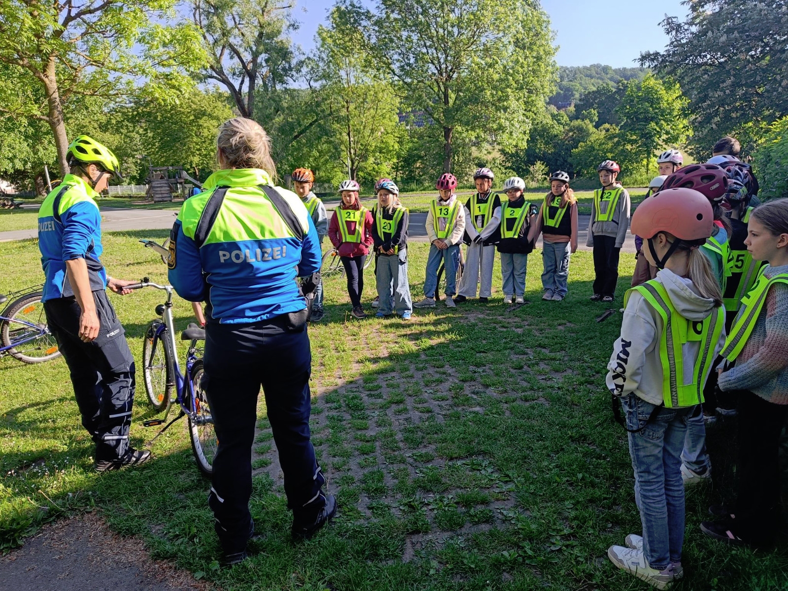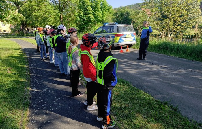 In Diebach übten wir auf dem Verkehrsübungsplatz fleißig mit den beiden Polizistinnen, die uns immer mit Rat und Tat zur Seite standen.