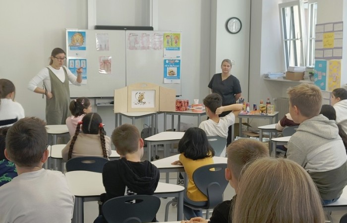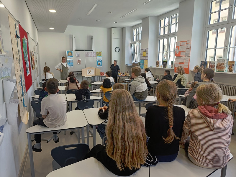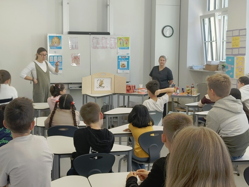 Verschiedene Erzählungen dienten als Ausgangspunkt, um ihnen den Zusammenhang zwischen Ernährung und Wohlbefinden näher zu bringen. Die Schülerinnen und Schüler lernten, dass Gesundheit sich aus verschiedenen Bausteinen - gesunder Ernährung, ausreichend Bewegung und (Zahn-)Hygiene – zusammensetzt.