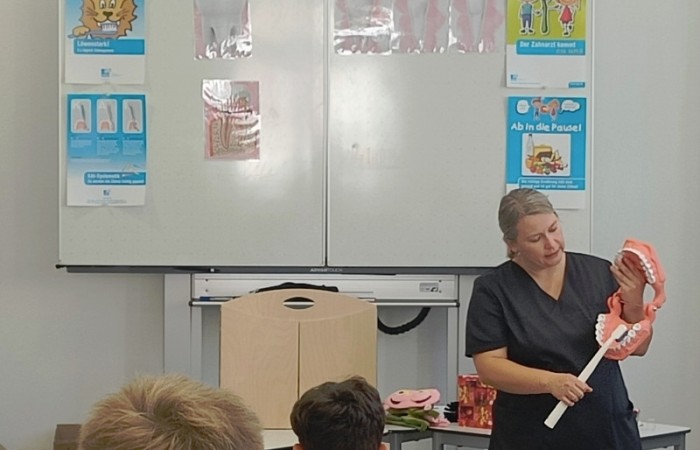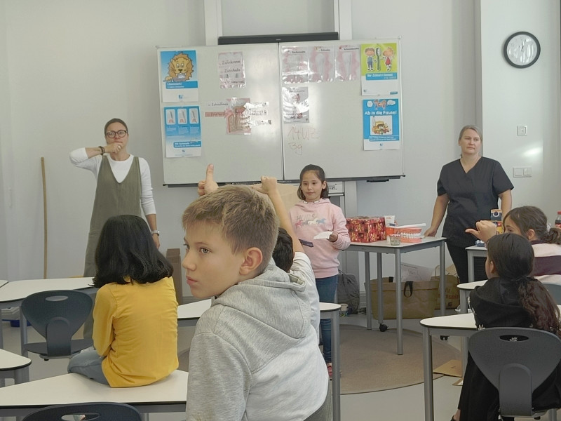 Der Besuch der engagierten Zahnärztin und ihrer medizinischen Fachangestellten war ein voller Erfolg und zeigte, wie wichtig es ist, Kinder frühzeitig über die Themen Ernährung und Zahngesundheit aufzuklären!