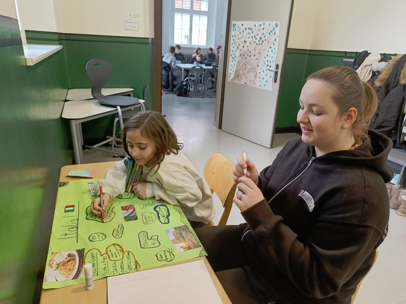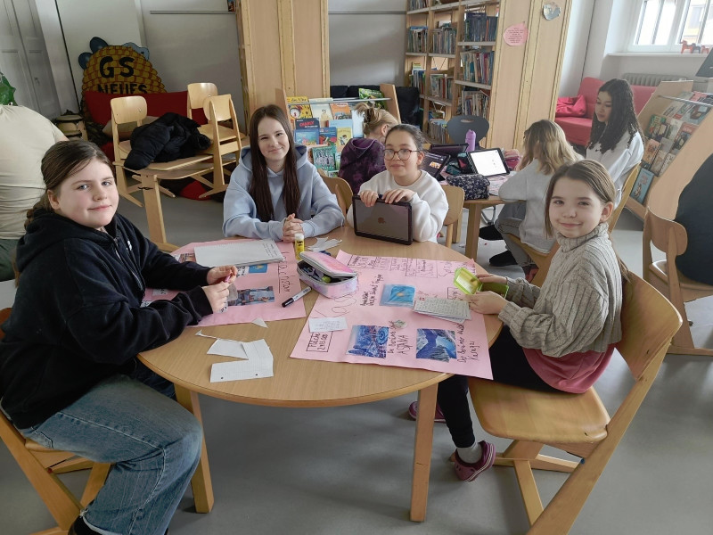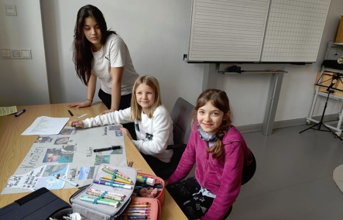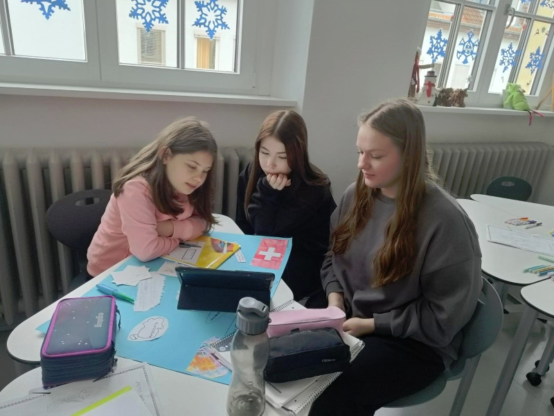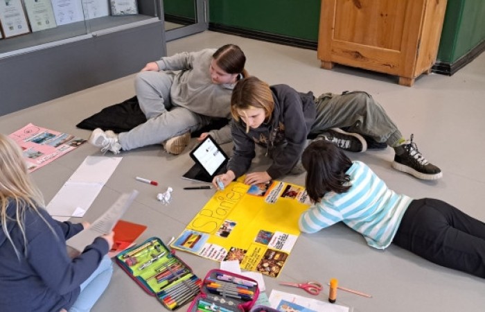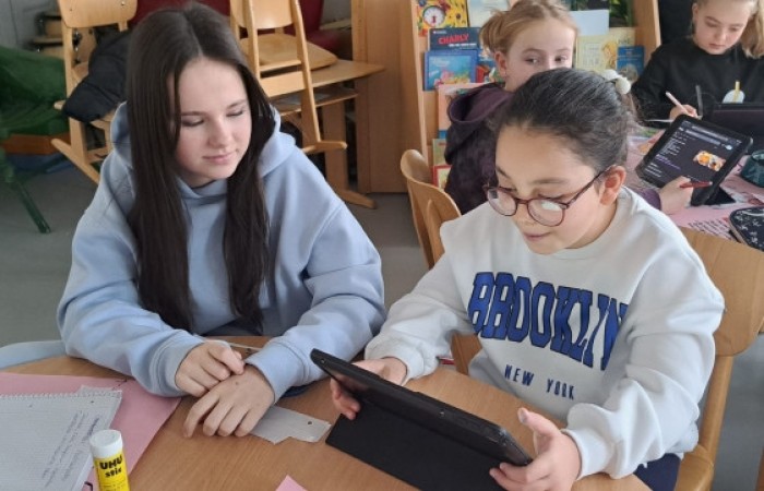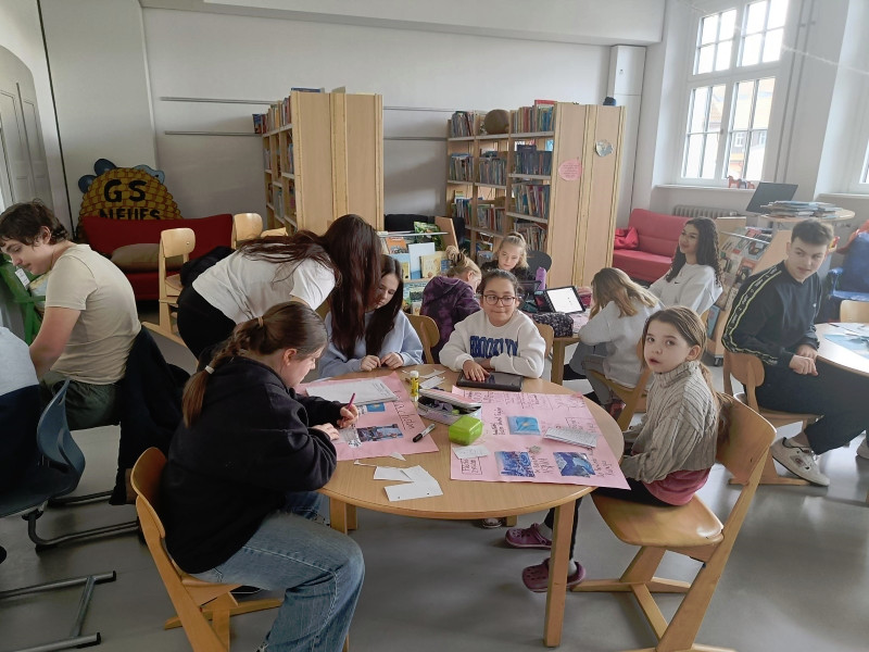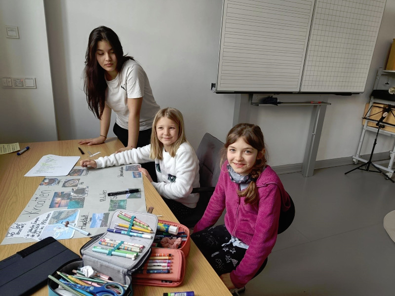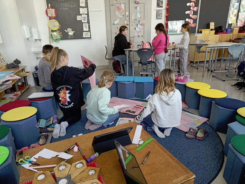 Mit ihnen arbeiteten wir gemeinsam an unseren Länderreferaten und den dazugehörigen Plakaten. Wir konnten mit ihnen die Gestaltung der Plakate besprechen und uns Tipps für unseren Vortrag abholen. Gemeinsam recherchierten wir mit den Tablets im Internet. Es war für alle eine entspannte und gewinnbringende Zusammenarbeit, die wir gerne wiederholen. Wir freuen uns auf den nächsten Besuch!