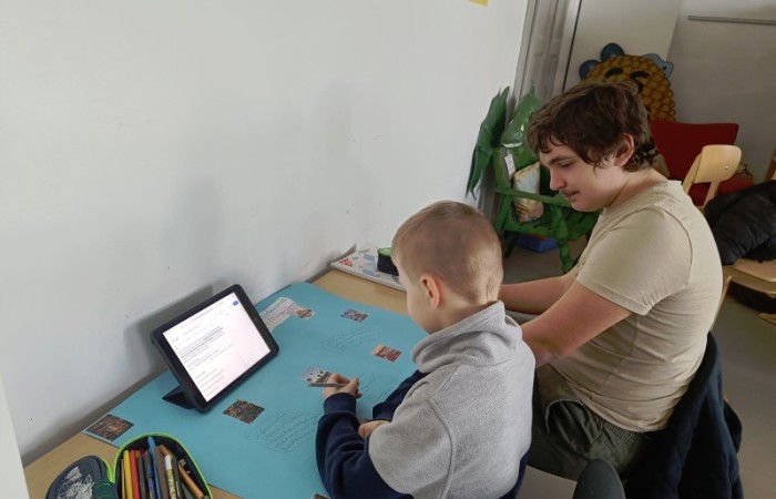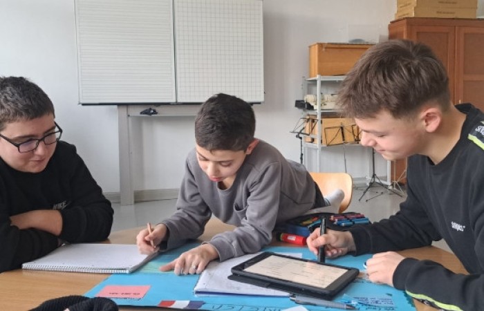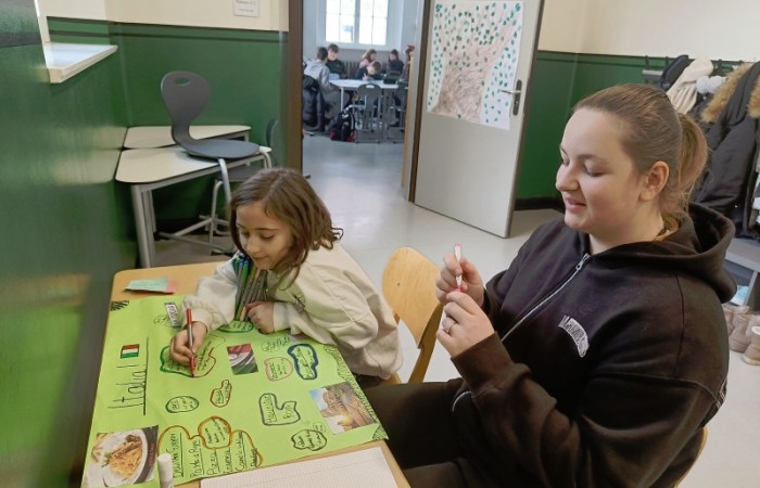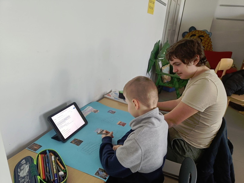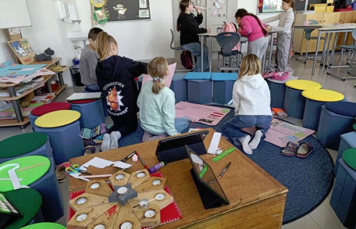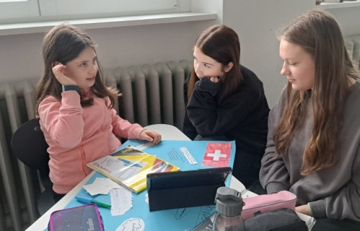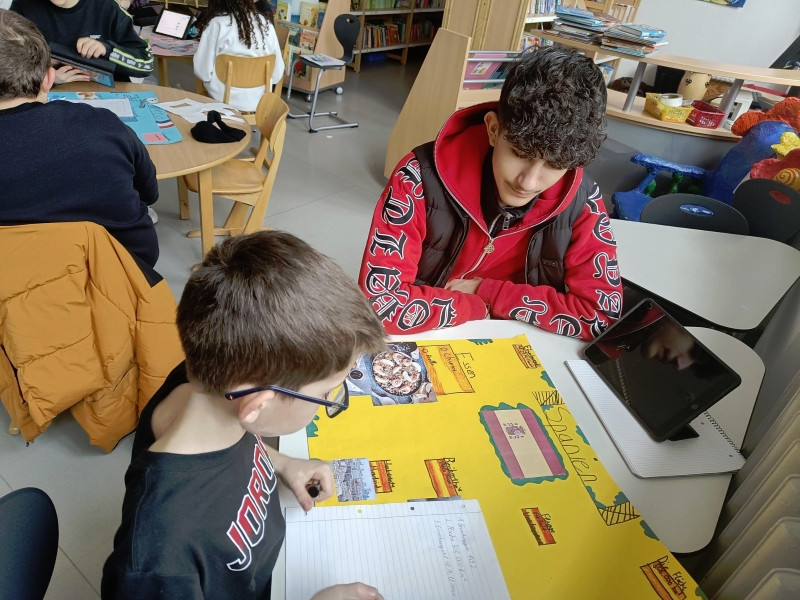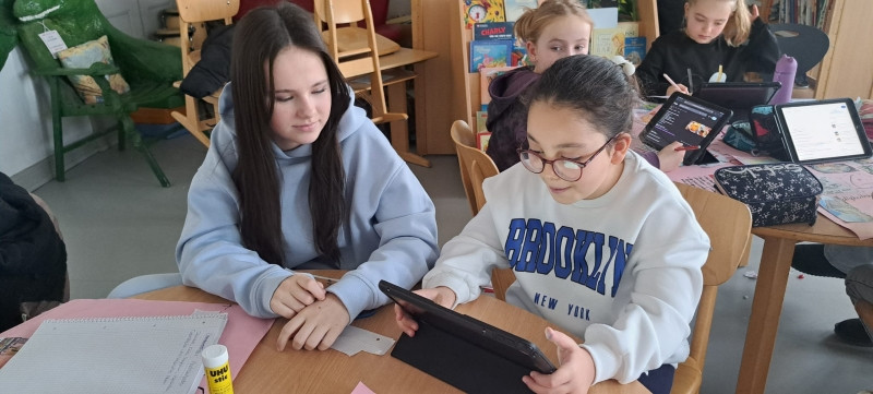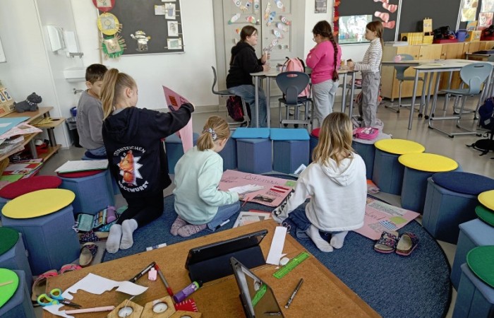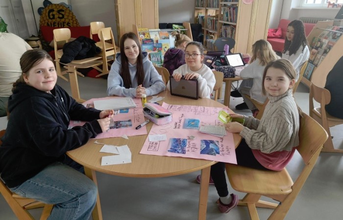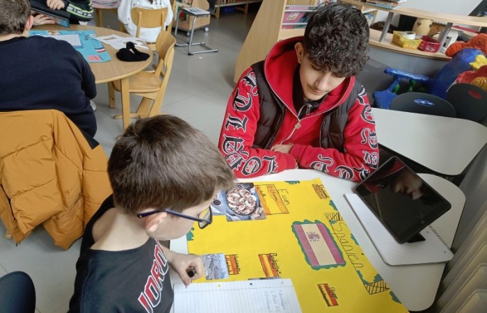 Mit ihnen arbeiteten wir gemeinsam an unseren Länderreferaten und den dazugehörigen Plakaten. Wir konnten mit ihnen die Gestaltung der Plakate besprechen und uns Tipps für unseren Vortrag abholen. Gemeinsam recherchierten wir mit den Tablets im Internet. Es war für alle eine entspannte und gewinnbringende Zusammenarbeit, die wir gerne wiederholen. Wir freuen uns auf den nächsten Besuch!