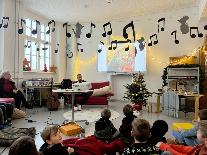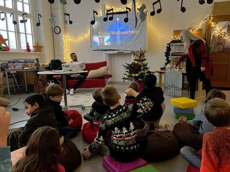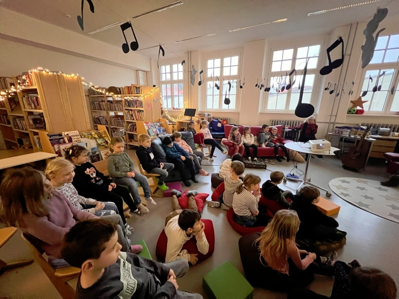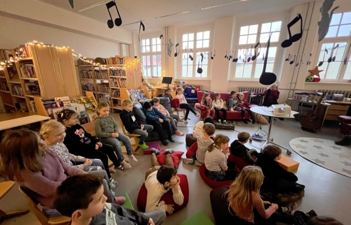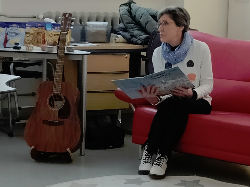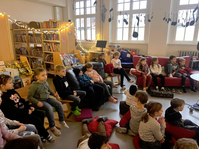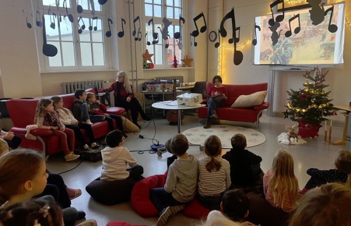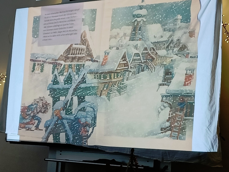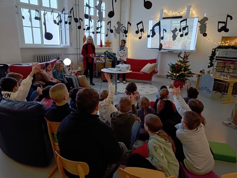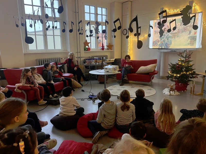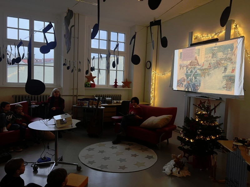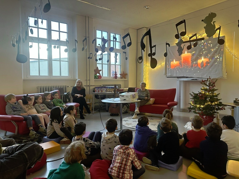 Frau Röder betreute alle 14 Klassen liebevoll und fachkundig zusammen mit der jeweiligen Klassenlehrkraft. Die Kinder genossen die weihnachtliche Stimmung und Ruhe sehr. Manch ein Schüler/Schülerin sagte: Ohhhh, das war jetzt schön, so entspannend. … Fast wie Kino. …. Können wir noch bleiben. … Auch wurde darüber geredet, dass dieses Buch einen wahren Kern besitzt.