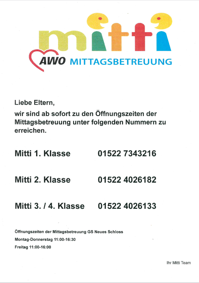 Damit unsere "Mitti"-Kinder noch besser betreut werden können, stehen unser Team und die Lehrkräfte der Schule im regelmäßigen Austausch. Auch sind wir sehr dankbar für Anregungen und Gespräche mit unseren "Mitti"-Eltern.